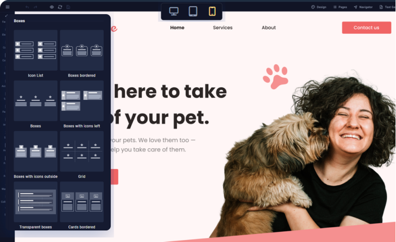 Crea facilmente siti Web straordinari, senza una sola riga di codice. Scegli un modello, aggiungi e personalizza gli elementi tramite un editor visivo facile da usare. E 'così semplice!